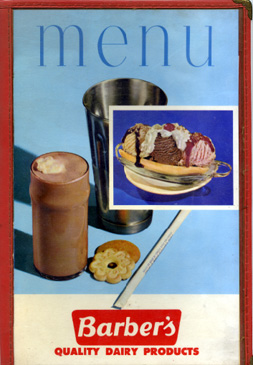 BEFORE YOU ORDER THE APPETIZER, YOU ALREADY KNOW WHAT YOU WANT FOR DESSERT: Menu covers, ca. 1965, supplied by Barber's and used by some Alabama restaurants and drug store lunch counters back in the day...